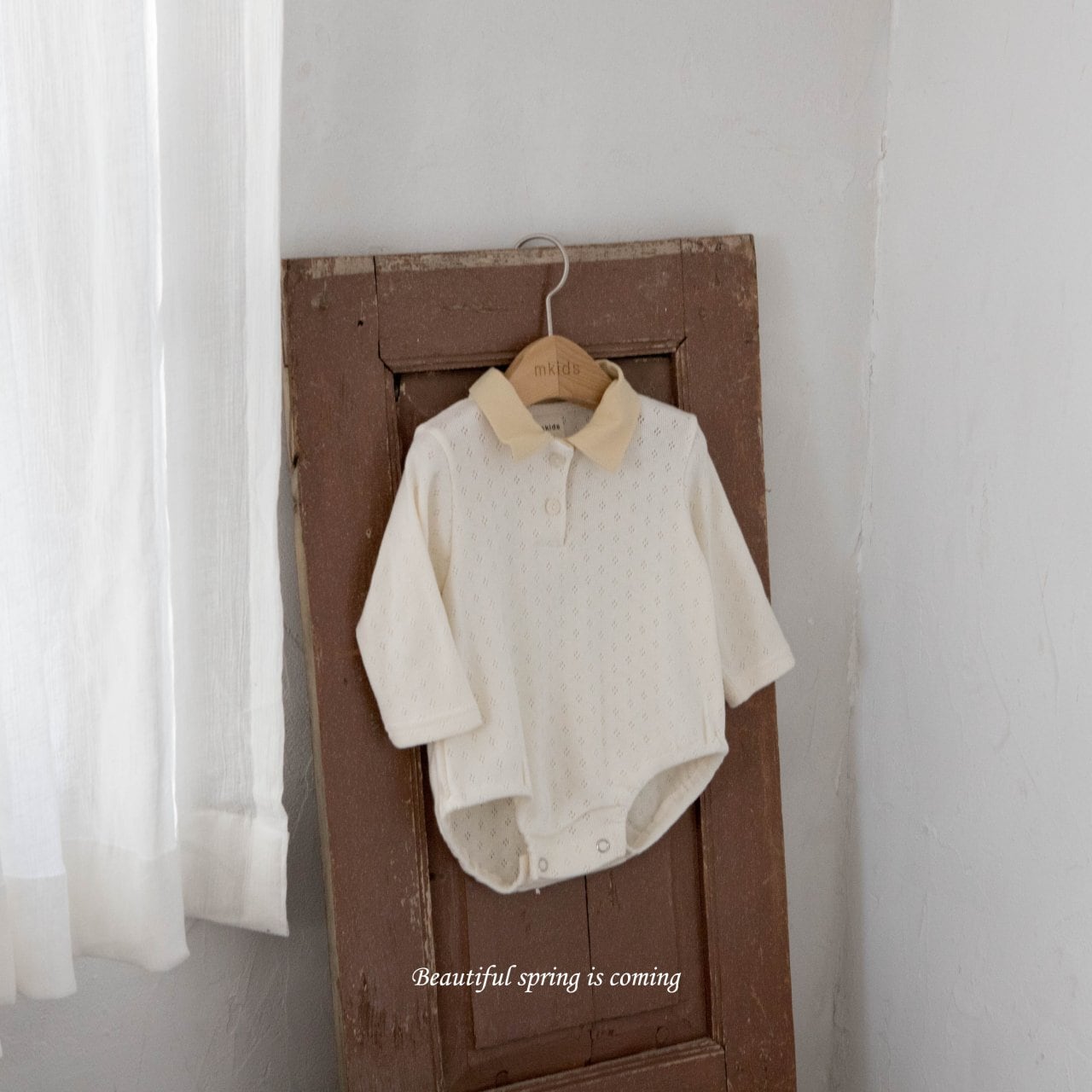 柔らかいアイレットの生地が春らしくて可愛いロンパース